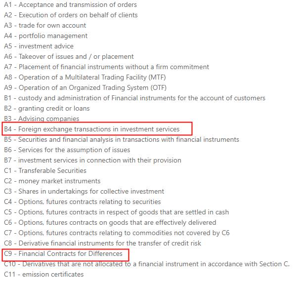 3. 您将在 BaFin 网站上获得交易商的个人资料。这时候你需要通过'通知'并检查交易商是否有权提供 'C9 - 差价金融合约'在'金融工具'或 'B4 - 投资服务中的外汇交易'在 '辅助证券服务';