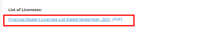 2.点击下方链接中的“List of Licensees(持牌人名单)”' on https://www.vfsc.vu/ 70-prevention-of-fraud-investments-act/, 按Ctrl+F搜索编号或交易名。