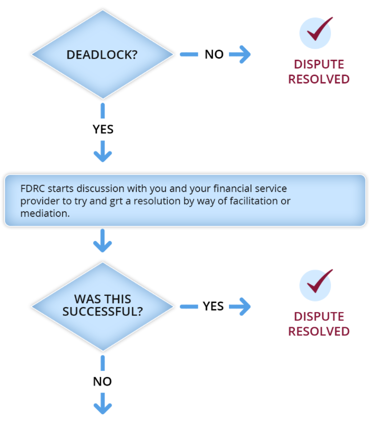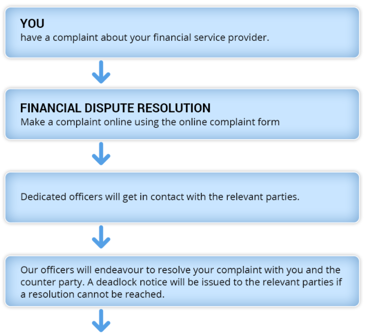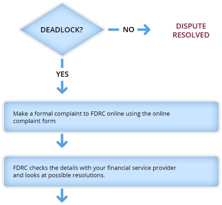 FDRC 还拥有专门从事冲突管理的内部专家。它提供了一个三级投诉流程,旨在有效彻底地解决争议。