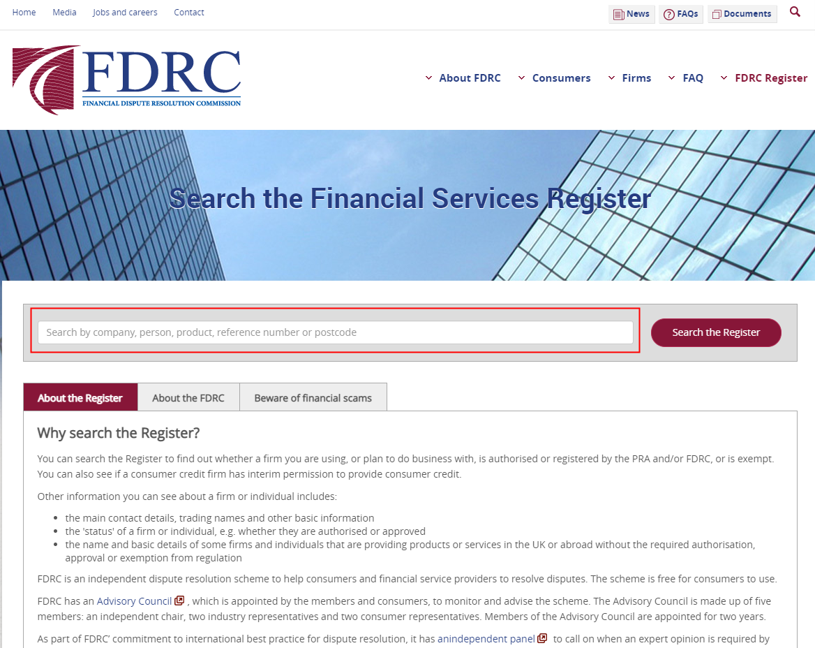 一般而言,FDRC 监管的交易商资料可在在其网站上的 FDRC 注册页面上找到 .请尝试搜索并检查资料中的信息是否与交易商网站上的一致。