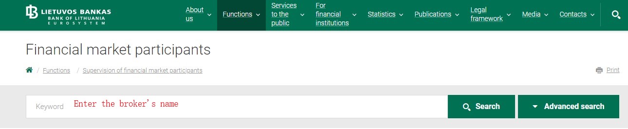 2. 在链接中搜索交易名 https://www.lb.lt/en/sfi-financial-market-participants ;