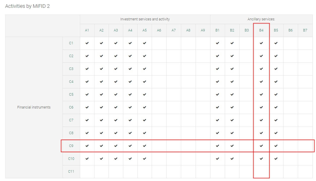 3.您将在 LBE 网站上获得交易商的内容。这时候你需要查看交易商是否有权限提供'C9 - 差价金融合约'或 'B4 - 与提供投资服务有关的外汇服务';