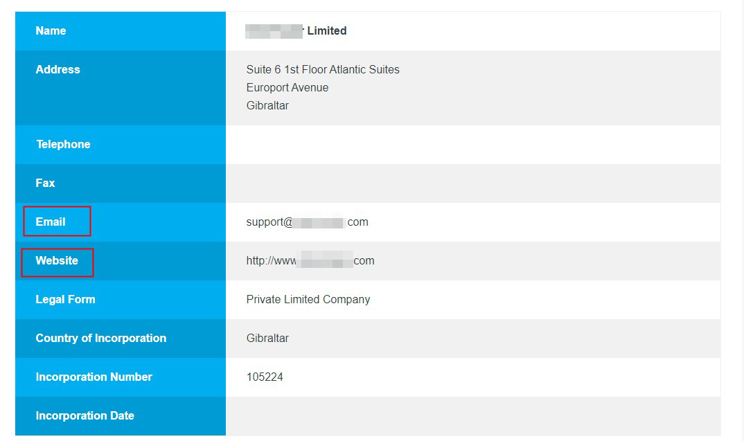 4. 如果以上所有步骤都完成了,别忘了检查最重要的信息:检查公司是否直布罗陀 FSC 网站上发布的详细信息与您将与之交易的信息相匹配,尤其是网站和电子邮件等。