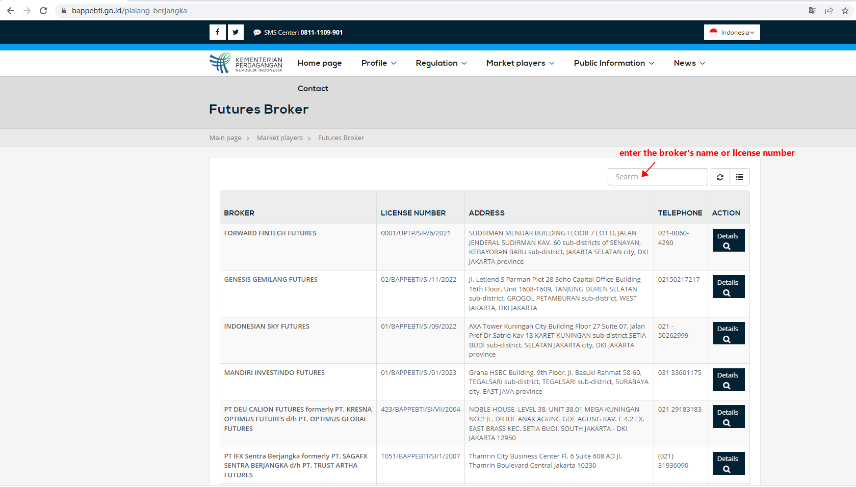 2. 在 https://bappebti.go.id/pialang_berjangka 的搜索栏中输入参考编号或名称;