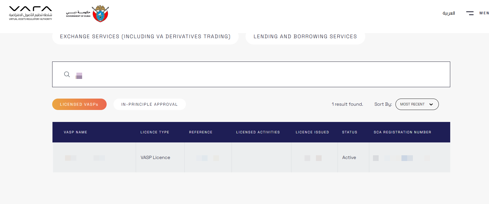 如果所有信息均匹配,则表明该经纪商已获得VARA的正式监管。